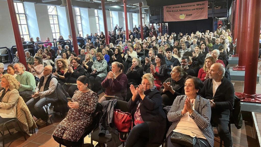 Panelin moderatörlüğünü gazeteci-yazar Yücel Özdemir üstlenirken, Almanca çevirileri Oktay Demirel yaptı. Etkinlik, DİDF adına Selçuk Kozan ve Mehtap Yılmaz-Gerlich’in Türkçe ve Almanca yaptığı açılış konuşmalarıyla başladı. Konuşmalarda, DİDF’in Almanya’daki sosyal, antifaşist ve barış yanlısı çalışmaları anlatılarak, göçmen ve Alman emekçilerin ortak mücadelesinin önemine dikkat çekildi.