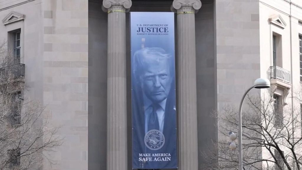 Washington’da Adalet Bakanlığı’na Trump pankartı asıldı